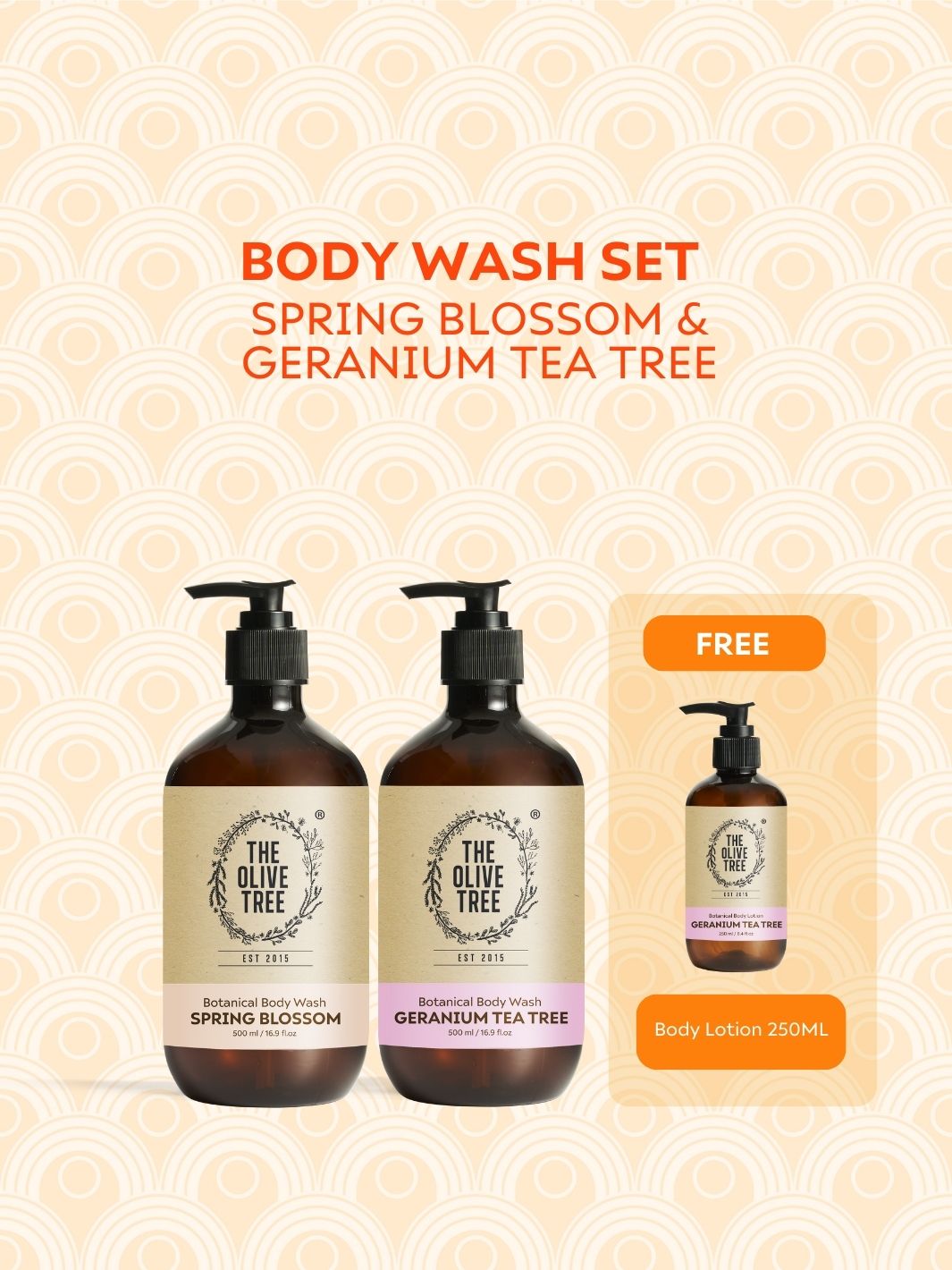 Botanical Essential Pouch & 250ml Geranium Tea Tree Body Lotion