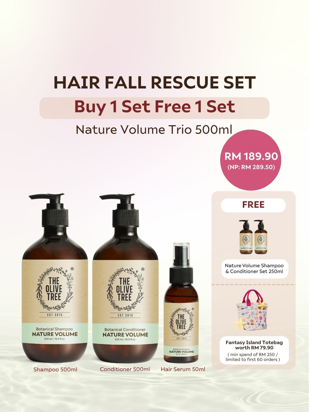 [Dr Chris Exclusive] Hair Fall Rescue Set - Nature Volume Trio 500ml ( FOC 250ml Shampoo + Conditioner )