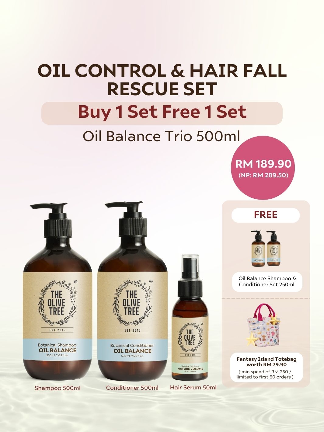 [Dr Chris Exclusive] Oil Control & Hair Fall Rescue Set - Oil Balance Trio 500ml ( FOC 250ml Shampoo + Conditioner )